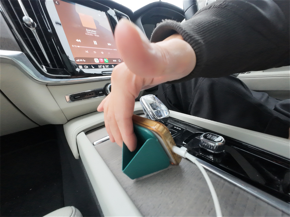 車の移動中でも、サッと指を引っ掛けられるから、地図や音楽の操作がめっちゃスムーズ。それでいて、使わないときはぺったんこに畳める。