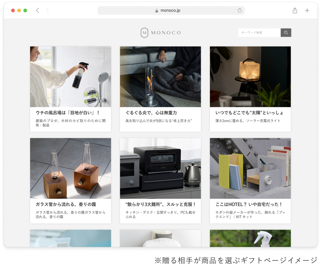 MONOCOが惚れ込んだアイテム(1000点)から、貴社オリジナルのカタログギフトが作れる法人様向けギフトサービスです。